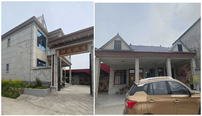 远远望去,福主宅院甚是高大气派,欧式建筑风格。门前无遮无挡,一眼便可望尽整座宅院。主房四间两层拔地而起,浮雕外墙、四坡流水屋顶,气势恢宏,尽显高门大户之象。门楼之上,上书“钟灵毓秀”四个鎏金大字,笔力遒劲,寓意此地汇聚天地灵气、孕育杰出人才。宅院占地极为开阔,五间宅基纵深舒展,院内可从容停放数辆车,毫不局促。整个院落宽敞明亮,日照充足,气场通畅,一派敞亮豁达之象。