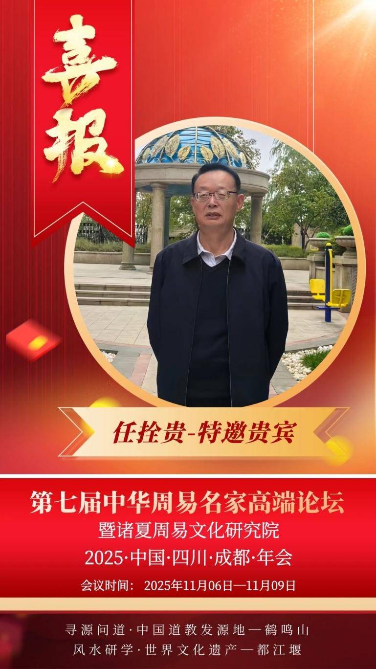 2025年11月,第七届中华周易名家高端论坛在成都鹤鸣山盛大召开,任拴贵老师怀着崇敬与求知之心踏入这片圣地。鹤鸣山,作为道教与易学文化的重要发源地,承载着千年的智慧沉淀,弥漫着古朴而神秘的气息。